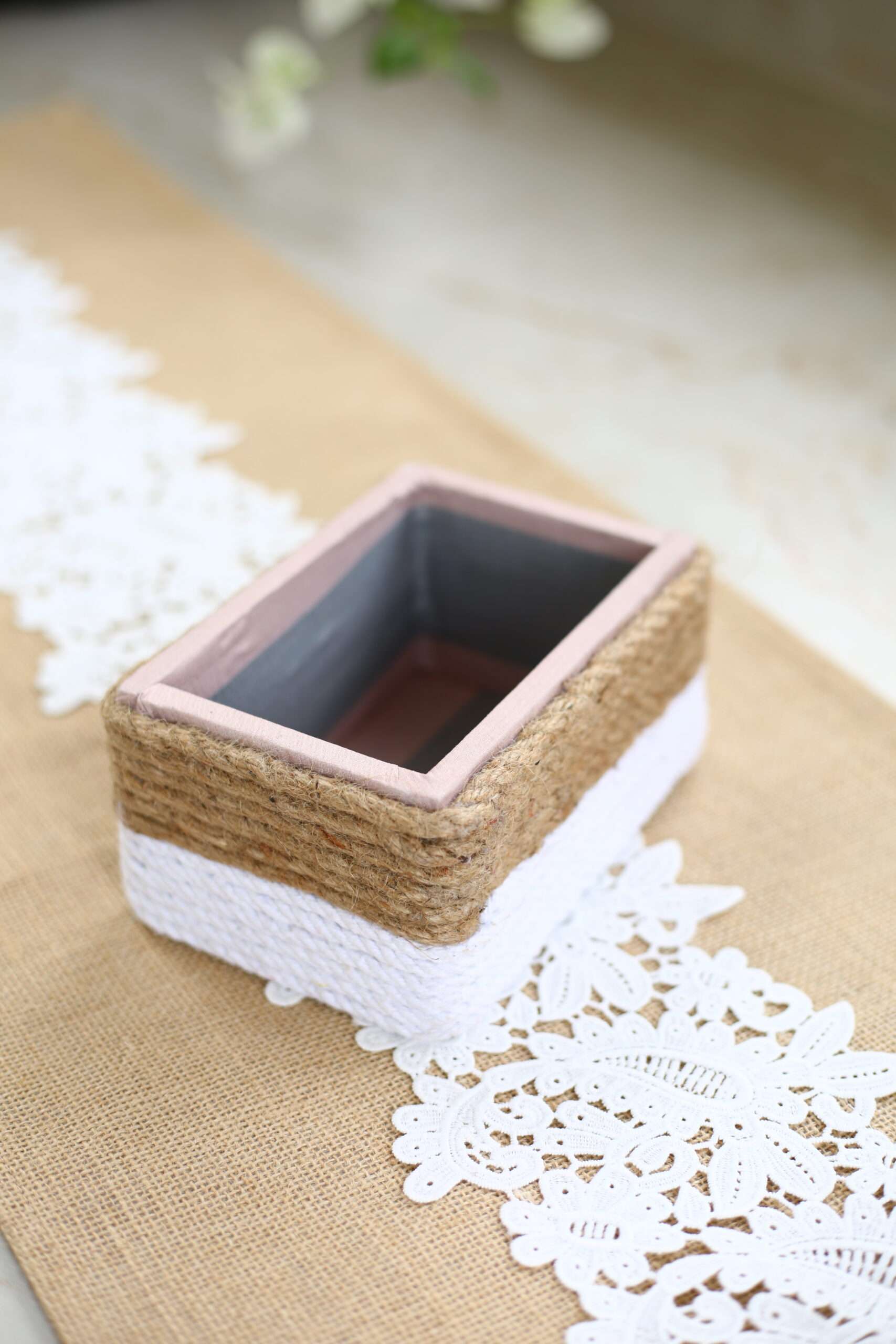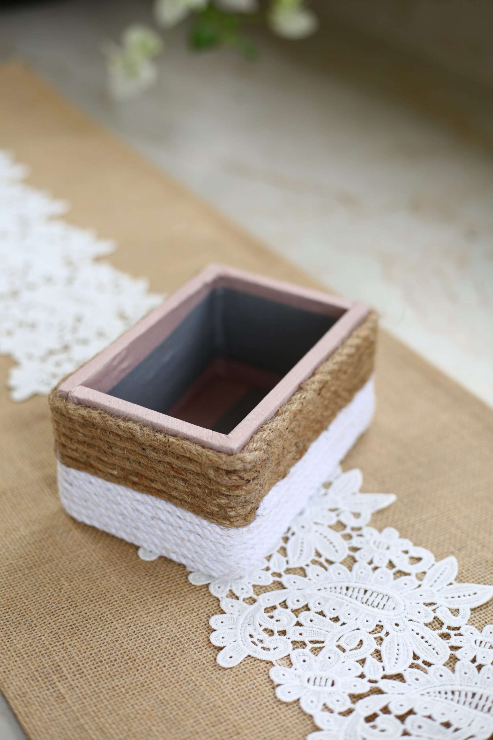 Add a touch of rustic charm and bohemian elegance to your home with this beautifully handcrafted storage box. Perfect for organizing small items or as a stylish miniature planter, this box seamlessly blends natural jute and soft cotton rope for a unique, dual-toned aesthetic. Each piece is meticulously wrapped to ensure a durable and attractive finish.