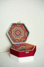 Handcrafted Hexagonal Resham (Silk Thread) Storage Box with Vibrant Mandala Lining (8″ x 8″ x 4″)