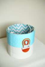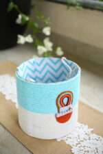 this colorful and charming handmade storage basket is a delightful addition to a nursery, child’s room, or craft space. Constructed from high-quality Resham (silk-like) thread in a striking two-tone design, it features a playful Hot Air Balloon motif on the front. Perfect for keeping toys, craft supplies, or small items organized in style. Dimensions: 8 x 8 inches.