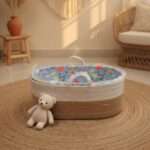 Made from 100% pure cotton jute rope, this bassinet reflects durability, sustainability, and breathable comfort. The intricate rope detailing adds a refined handcrafted touch, making it not just a baby essential but also a statement piece.