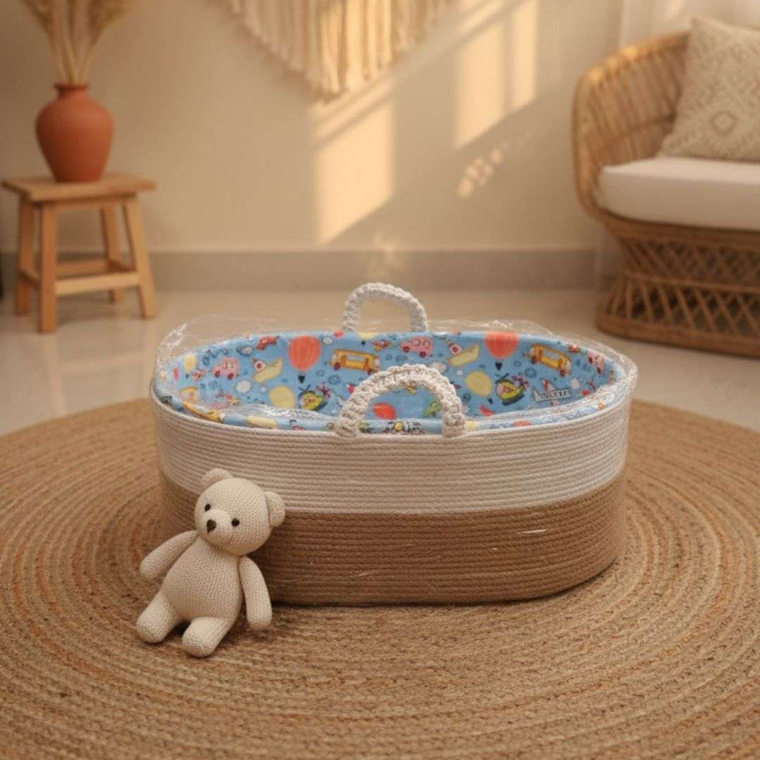 Welcome your baby into a world of comfort and serenity with The Little Solace Baby Bassinet. Beautifully handcrafted using pure cotton jute rope, this bassinet combines natural artistry with soft cushioning to create a safe and nurturing sleep space for your newborn.
