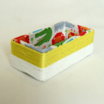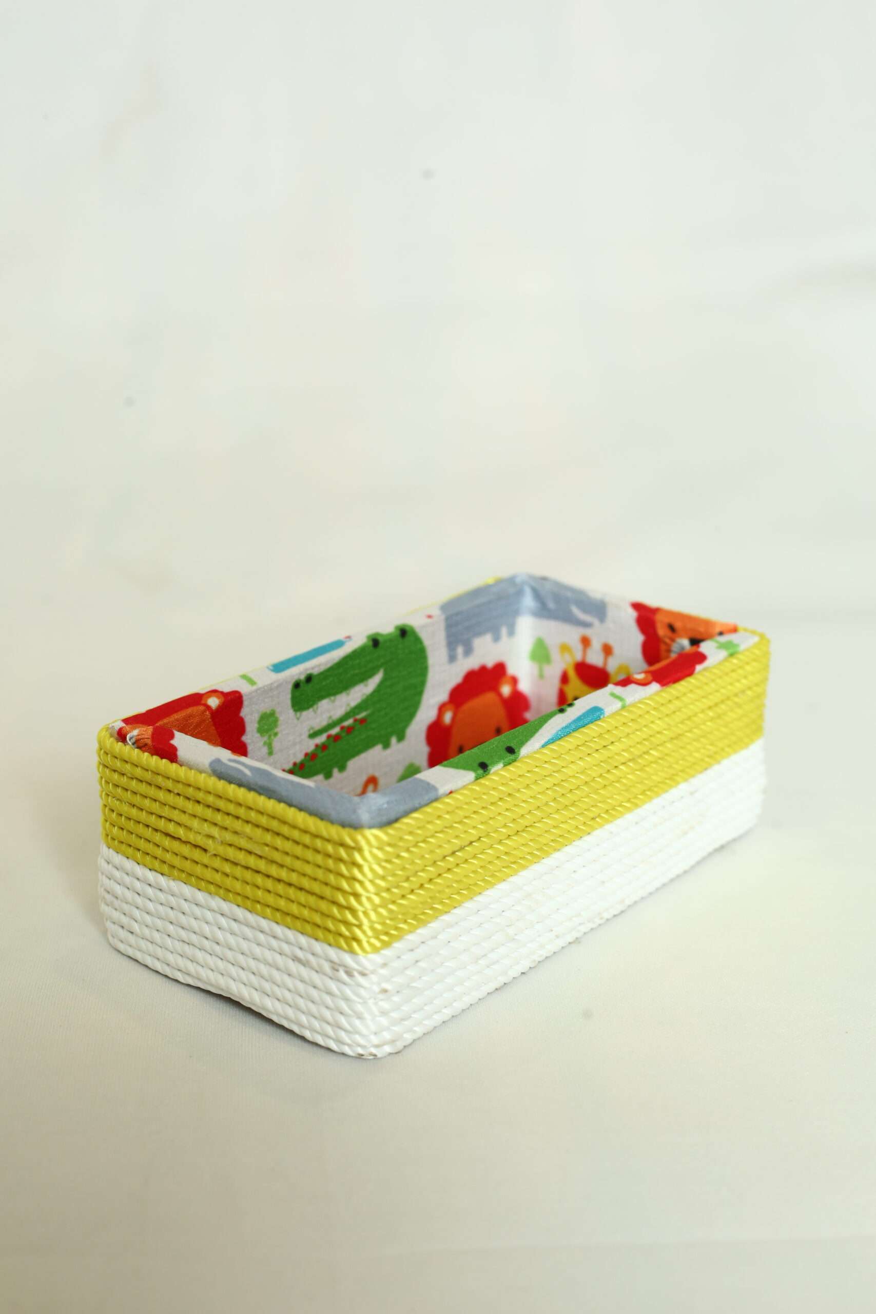 Keep clutter at bay with this charming and sturdy rectangular storage basket. Perfectly sized for those hard-to-organize small items, its playful design is sure to appeal to children and parents alike.